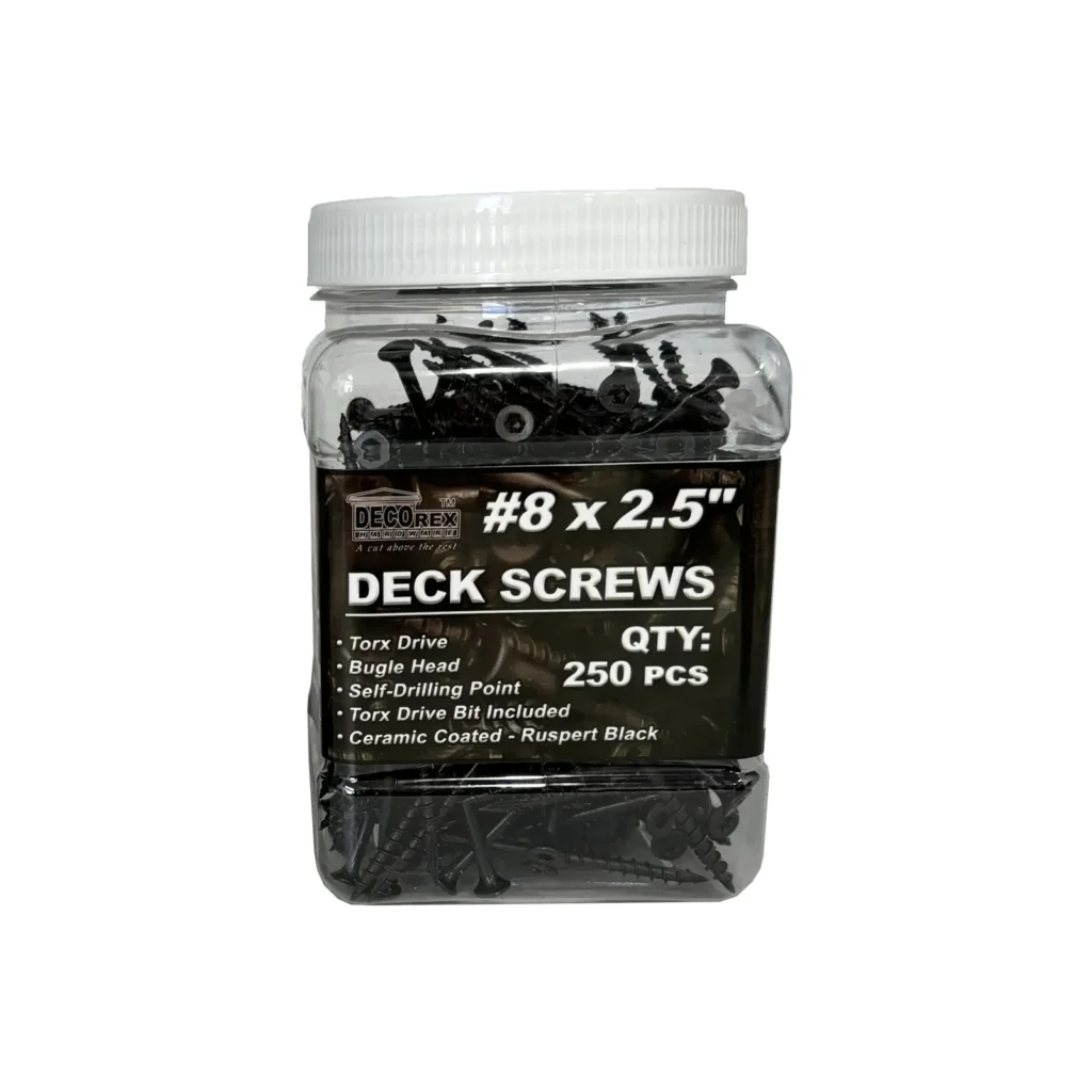 #8 x 2.5 Deck Screws, Torx Drive, Bugle Head, Black Ruspert, Self-Drilling – 250pcs Jar