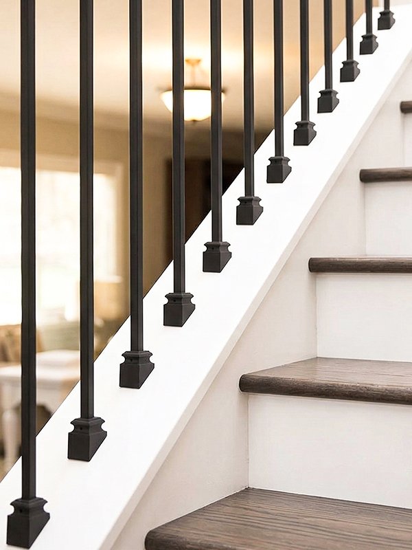 Iron Stair Balusters 5/8″ Round x 44″ Long, Classic, Hollow, Black Powder Coated – 30pcs – (Satin Black) – DH-28