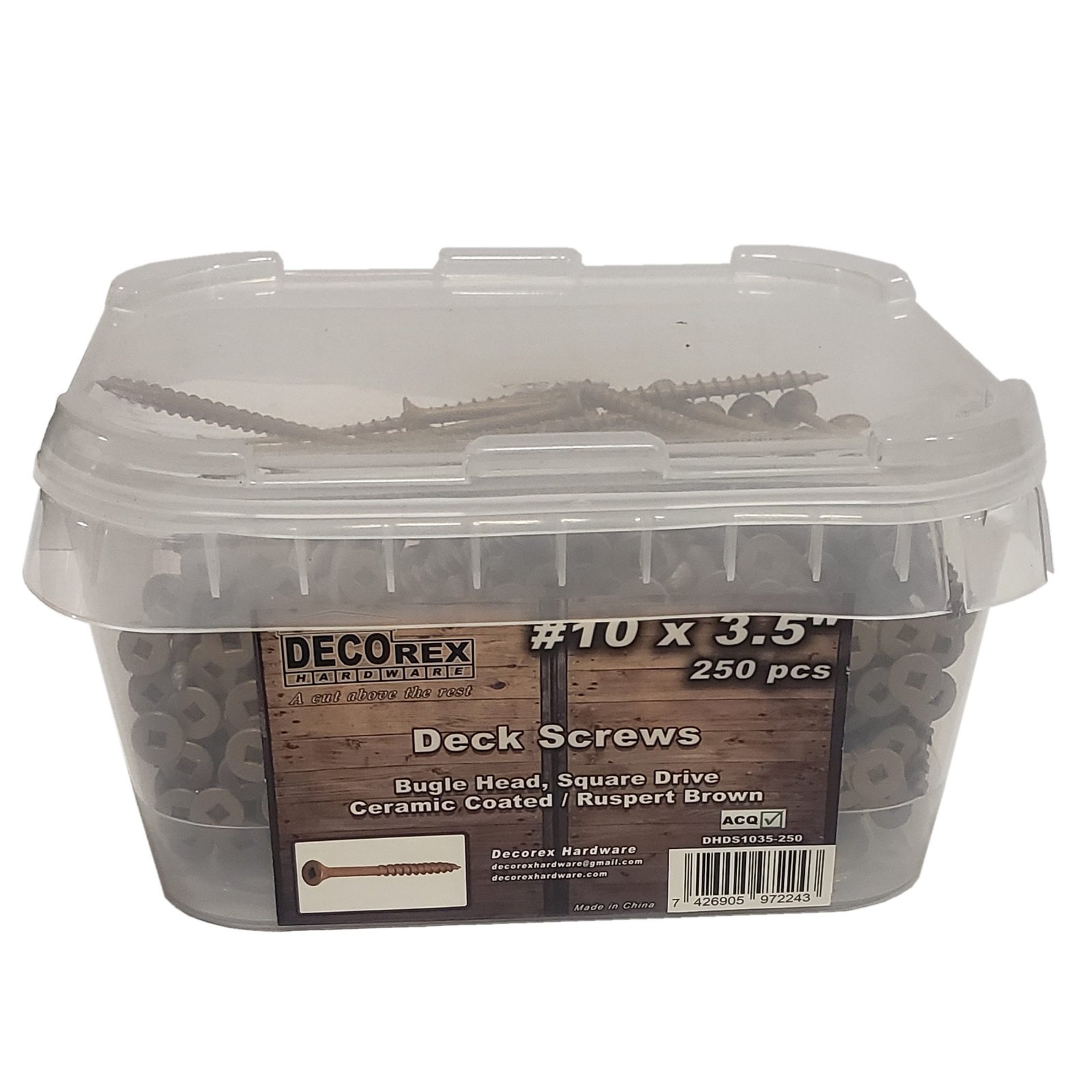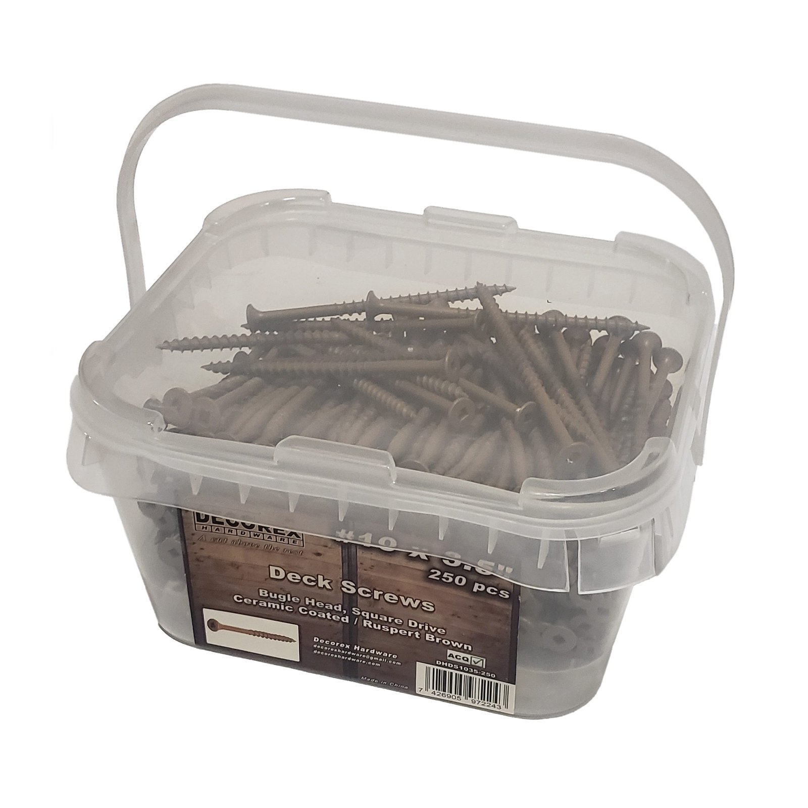 Decorex Hardware #10 x 3 1/2″ Deck Screws | Square Drive | Bugle Head | Brown Ruspert | 250pcs Box