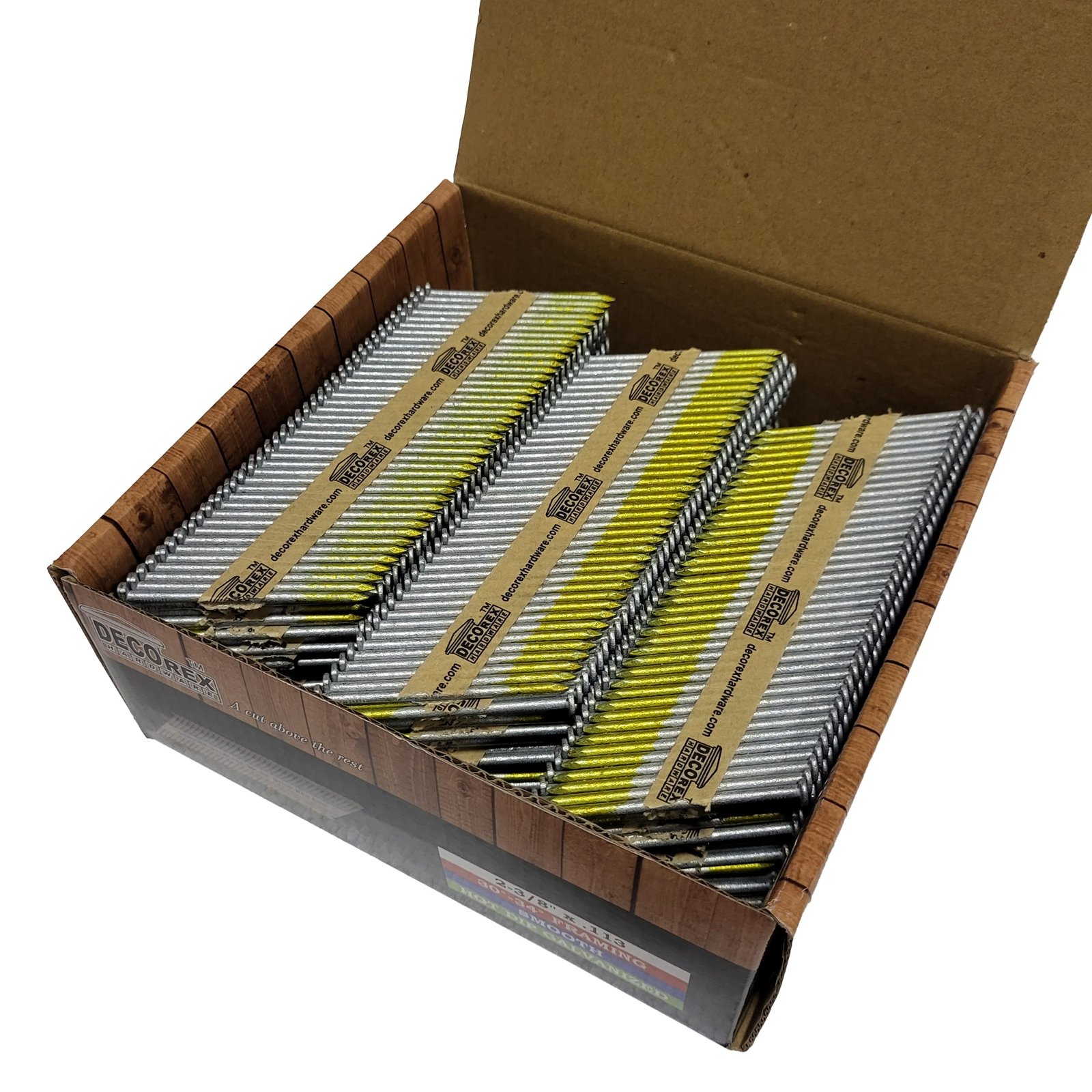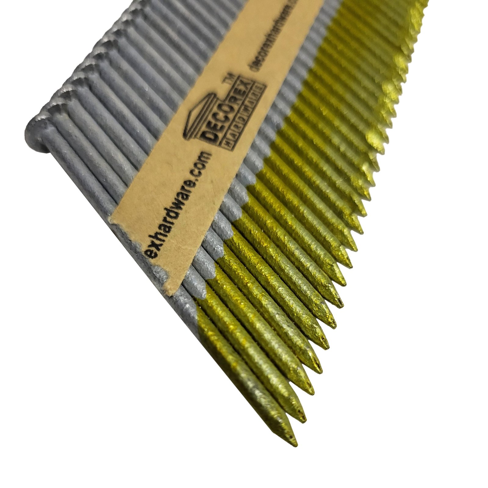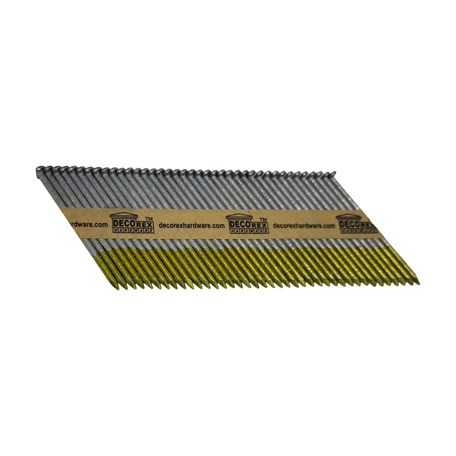 These Decorex Hardware Smooth Shank Strip Nails are a type of nail that is commonly used in various construction applications, particularly in framing and general construction projects. These nails are made from high-quality steel, which makes them durable and long-lasting.