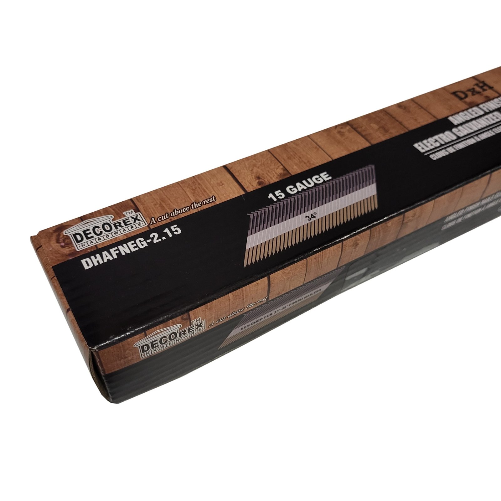 2″ Angled Finish Nails, 15 Gauge, Clipped D Head, Electro Galvanized (33-35 Degree) – 2000pcs Box (DHAFNEG-2.15)
