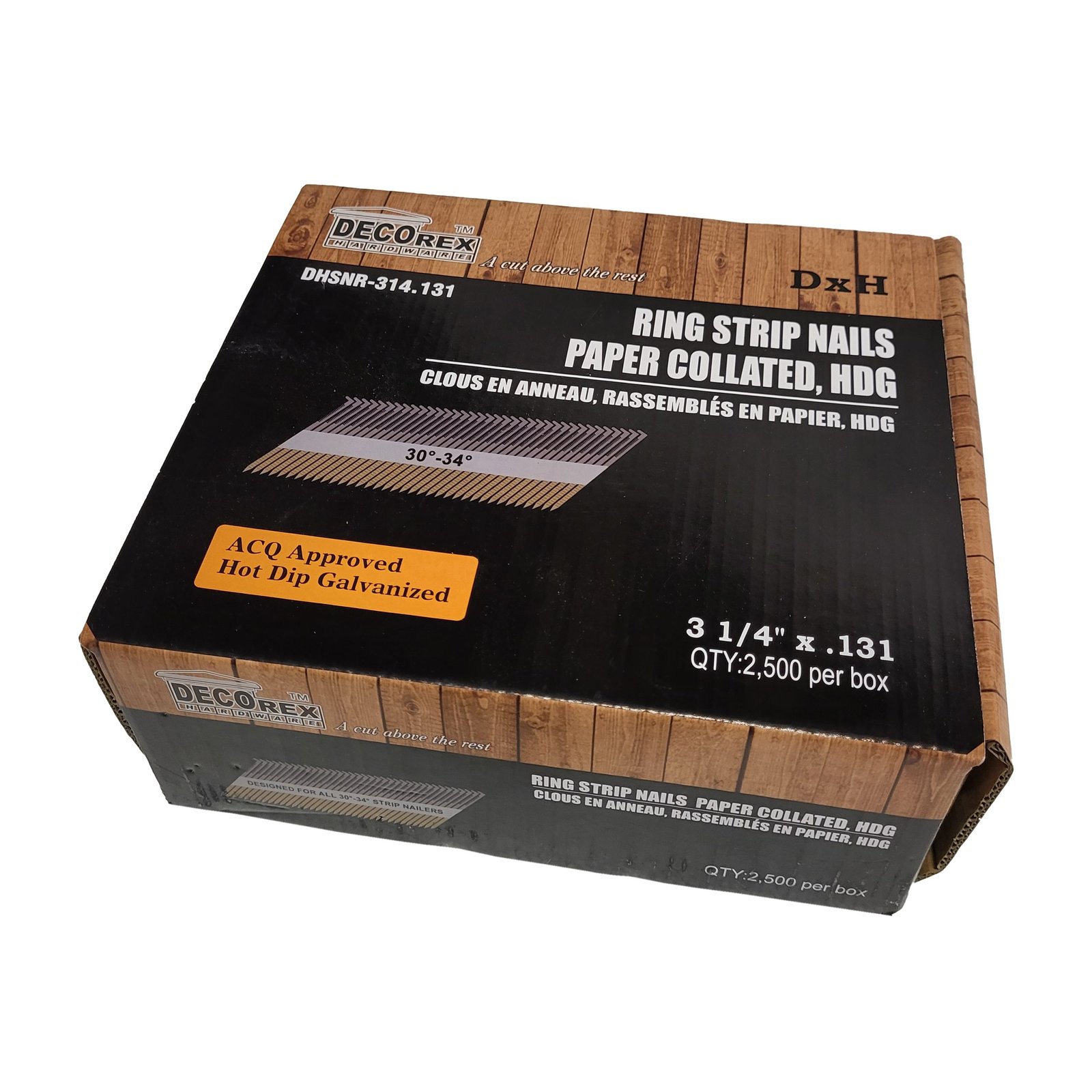 3 1/4″ x .131 Ring Shank Strip Nails, Paper Collated, Hot Dip Galvanized (30-34 Degree) – 2500pcs box (DHSNR-314.131)