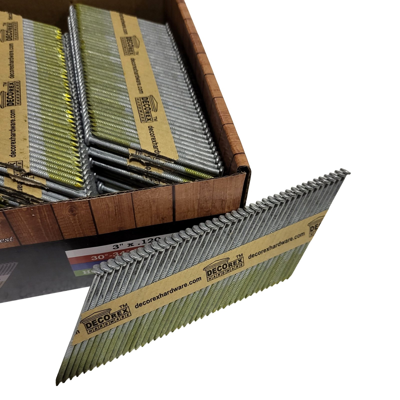 3″ x .120 Ring Shank Strip Nails, Paper Collated, Hot Dip Galvanized (30-34 Degree) – 2500pcs box (DHSNR-3.120)