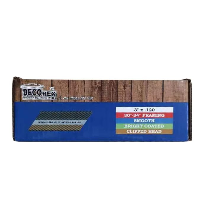 These Decorex Hardware Smooth Shank Strip Nails are a type of nail that is commonly used in various construction applications, particularly in framing and general construction projects. These nails are made from high-quality steel, which makes them durable and long-lasting.