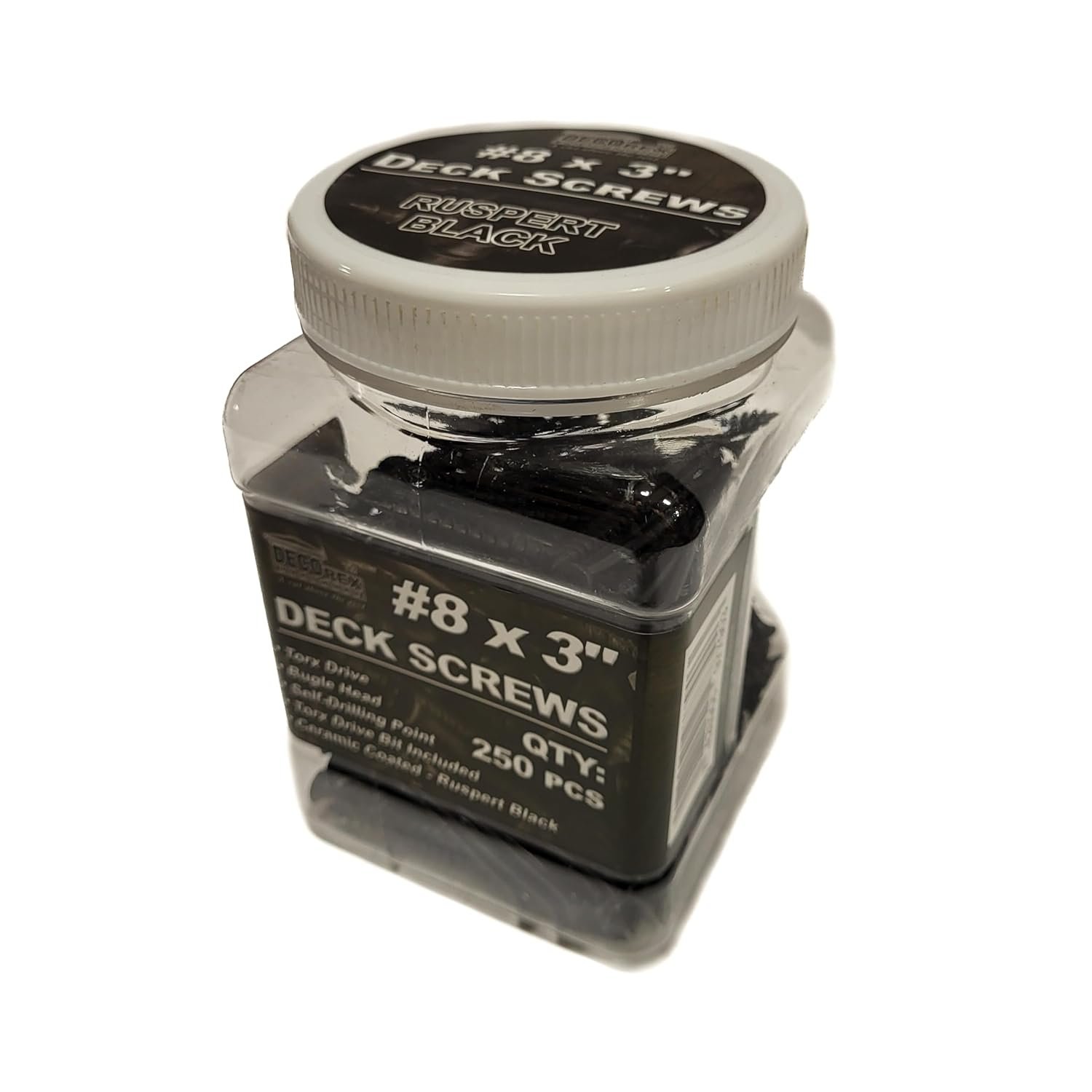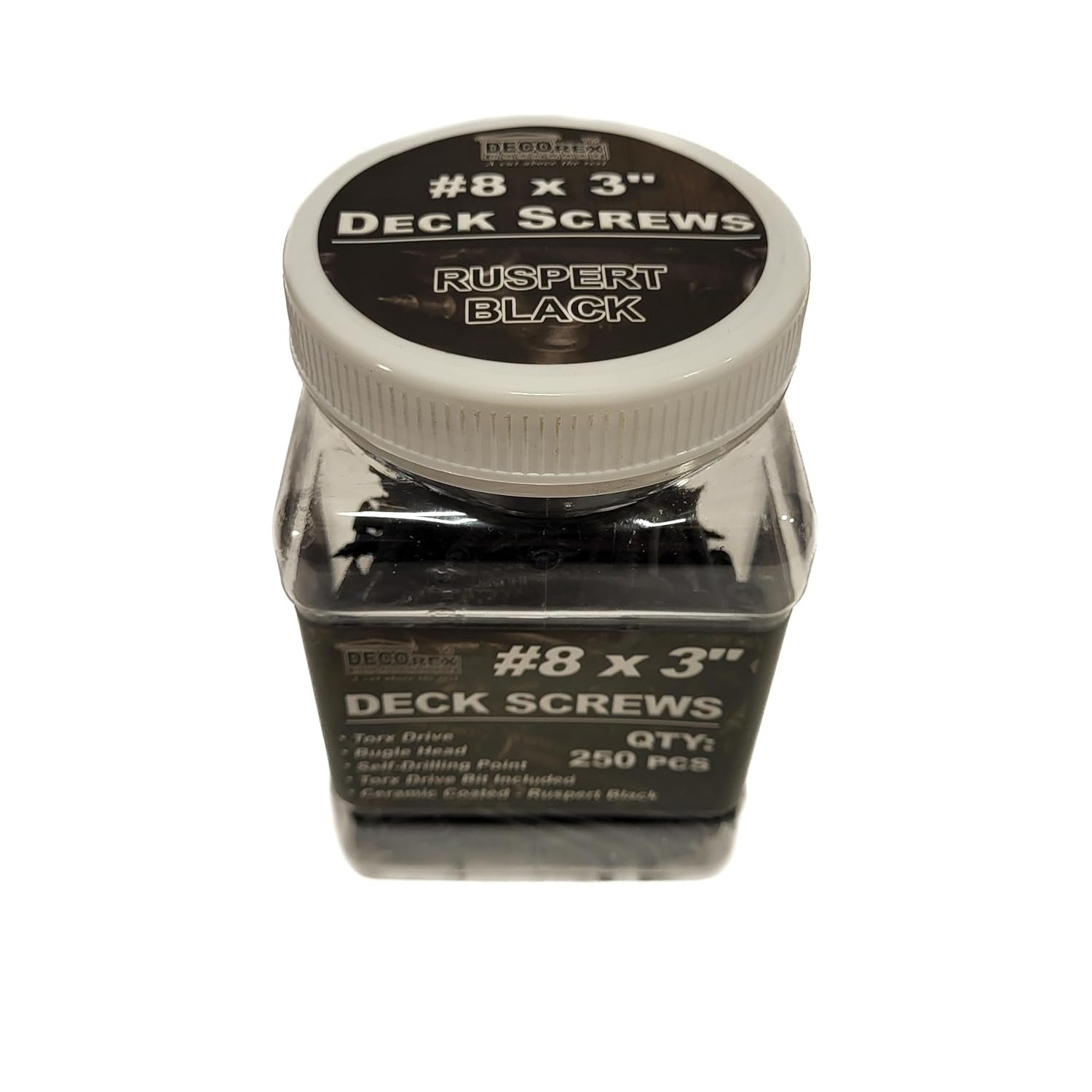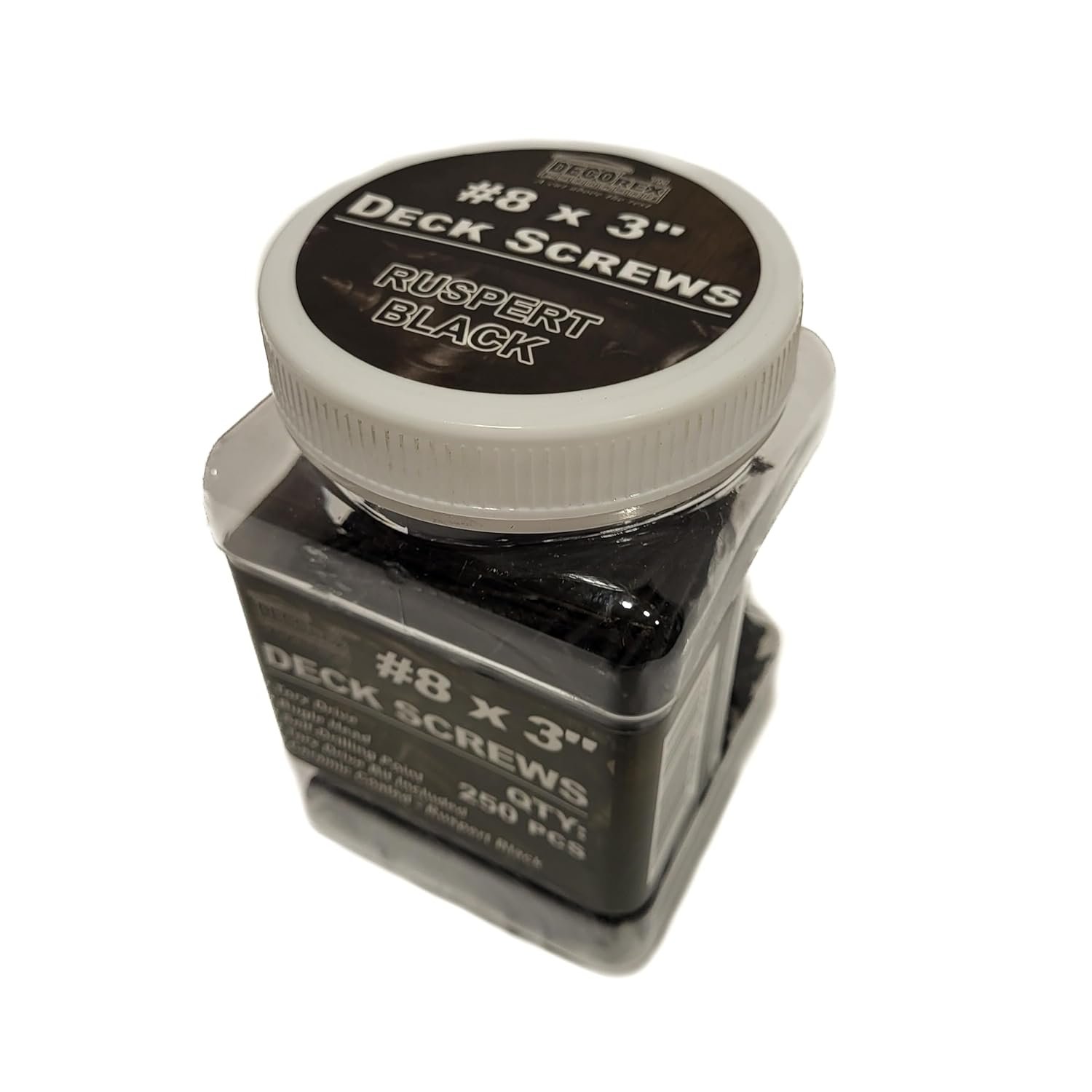 #8 x 3 Deck Screws, Torx Drive, Bugle Head, Black Ruspert, Self-Drilling – 250pcs Jar