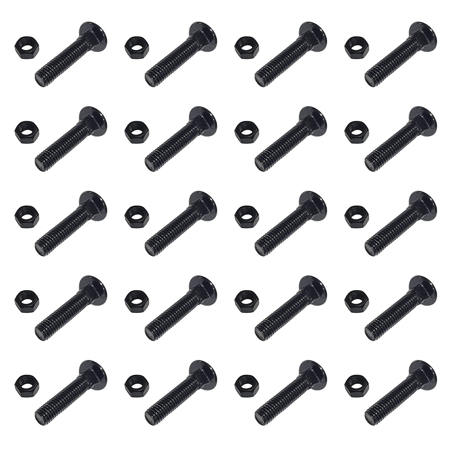 8 x 35 mm Long Carriage Bolt Set w/Hex Nut for Chain Link Fence Accessories - Black (20 Pack)
