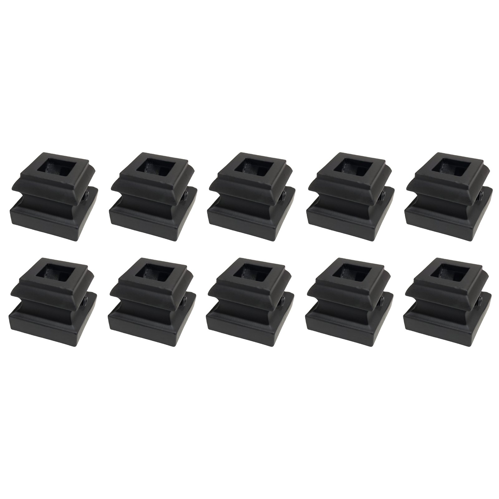 Baluster Flat Base Shoe with Set Screw – for Use with 1/2″ Square Iron Balusters – Set of 10 (Satin Black) – DH-30