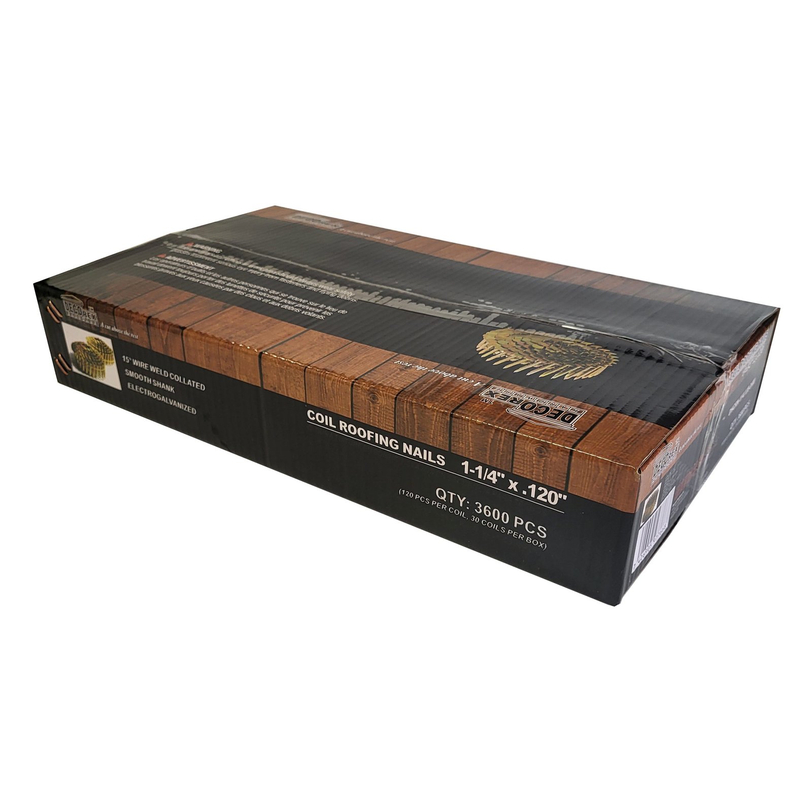 Coil Roofing Nails 1-1/4″ x 0.120 Electro Galvanized, 15 Degree – 3600pcs (120pcs per coil, 30coils per box) – DHCRN-114.120-3600