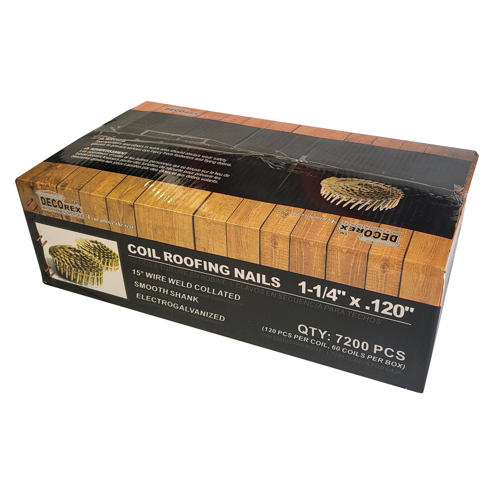 Coil Roofing Nails 1-1/4″ x 0.120 Electro Galvanized, 15 Degree – 7200pcs (120pcs per coil, 60coils per box) – DHCRN-114.120-7200