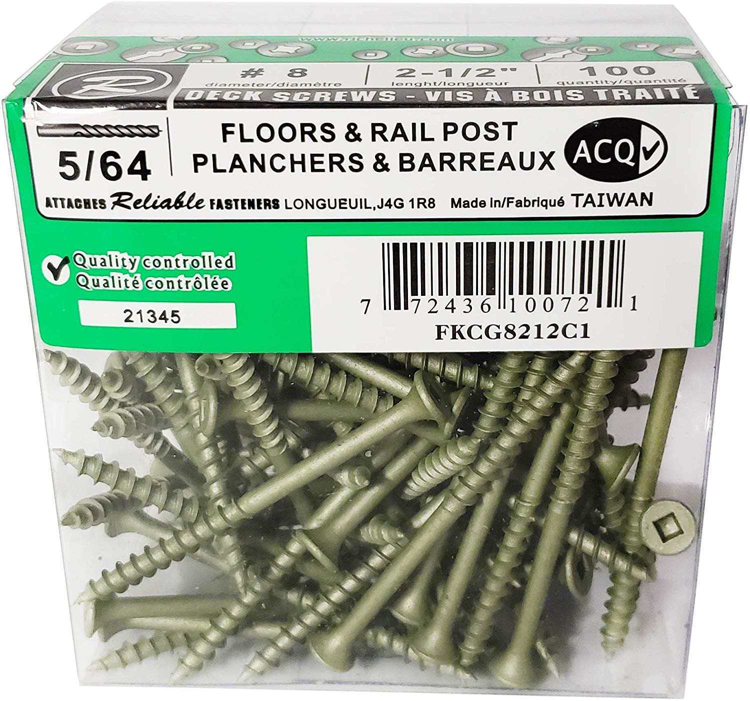 Are you starting a new decking project? You need reliable materials? Search no further! These Reliable Fasteners screws are made for treated wood and are designed to be used with a square-tip screwdriver. These 2-1/2″ long #8 screws have a bugle head and a coarse thread. They are made of steel with a ACQ green ceramic finish.