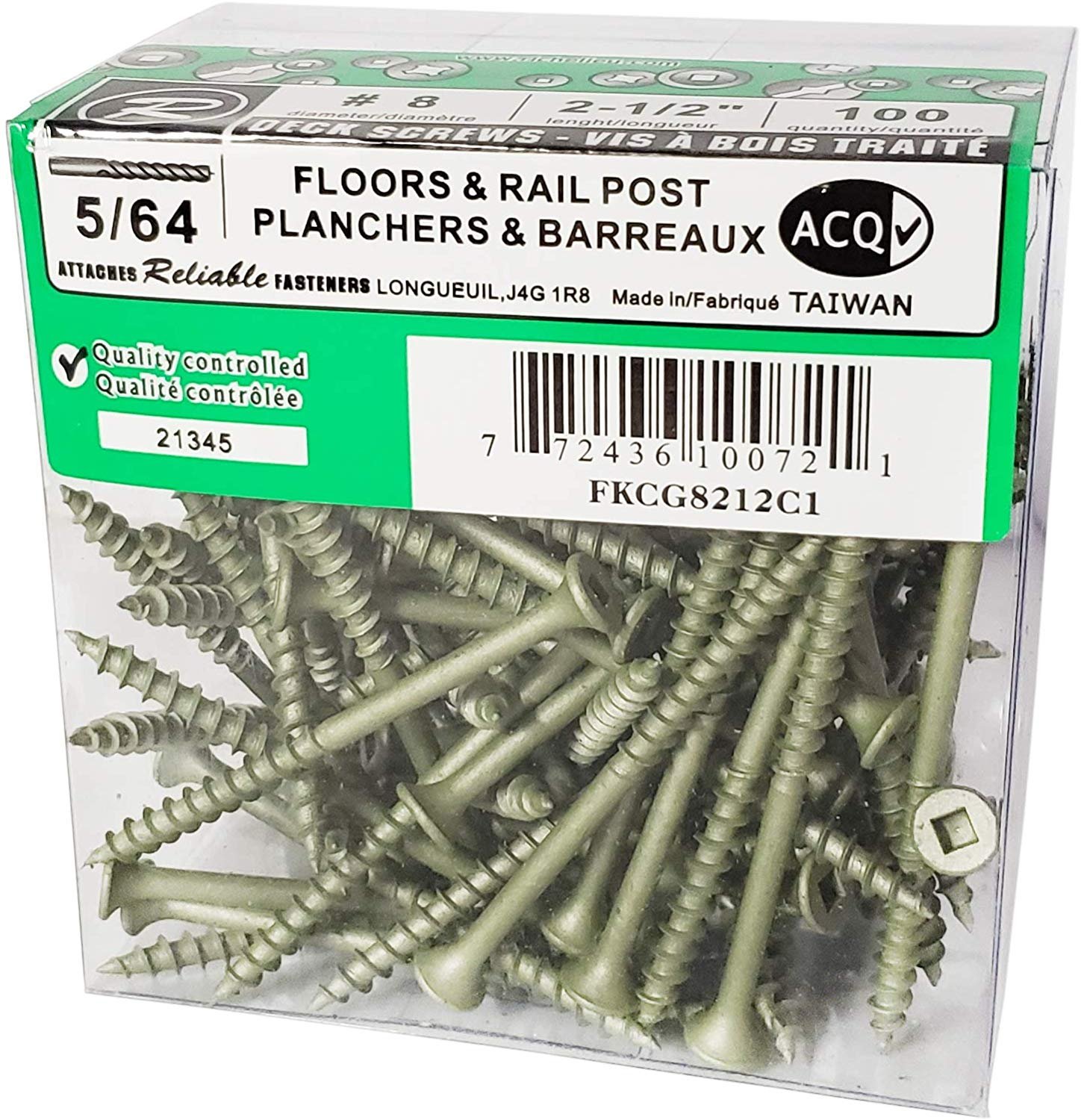 Deck Screws #8 x 2-1/2″ ACQ Green Ceramic Finish, Square Drive (100 Pack)