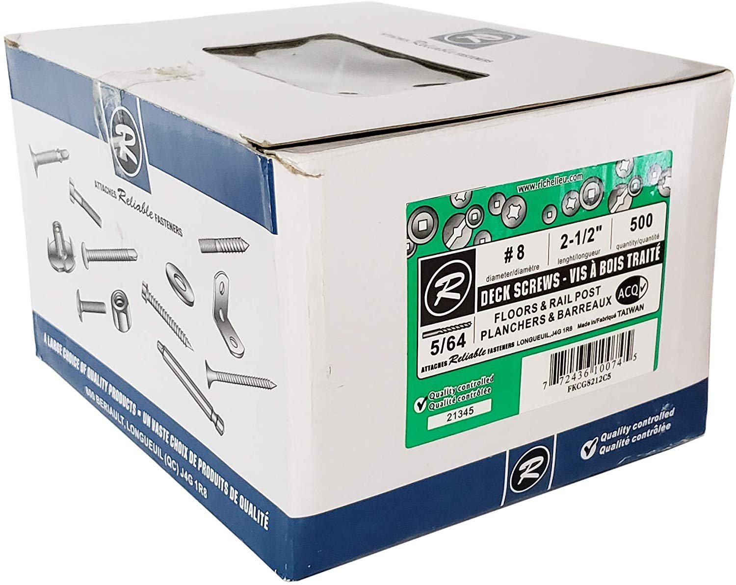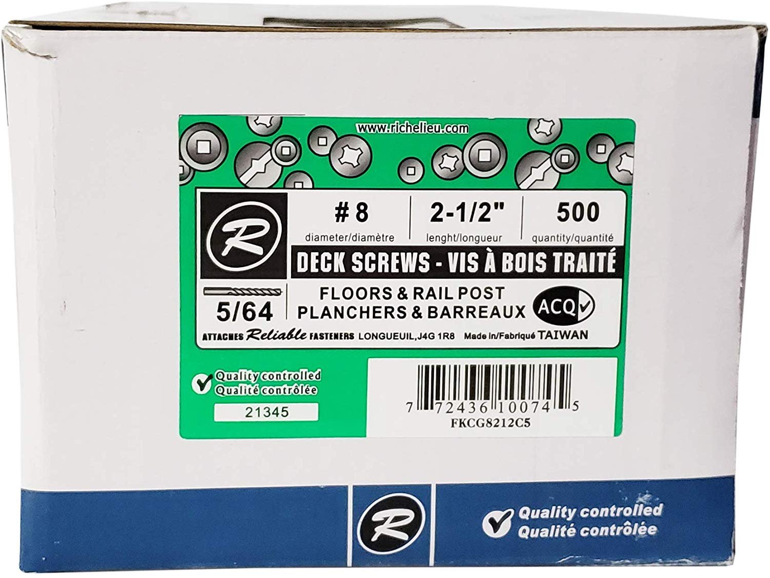 Are you starting a new decking project? You need reliable materials? Search no further! These Reliable Fasteners screws are made for treated wood and are designed to be used with a square-tip screwdriver. These 2-1/2″ long #8 screws have a bugle head and a coarse thread. They are made of steel with a ACQ green ceramic finish.