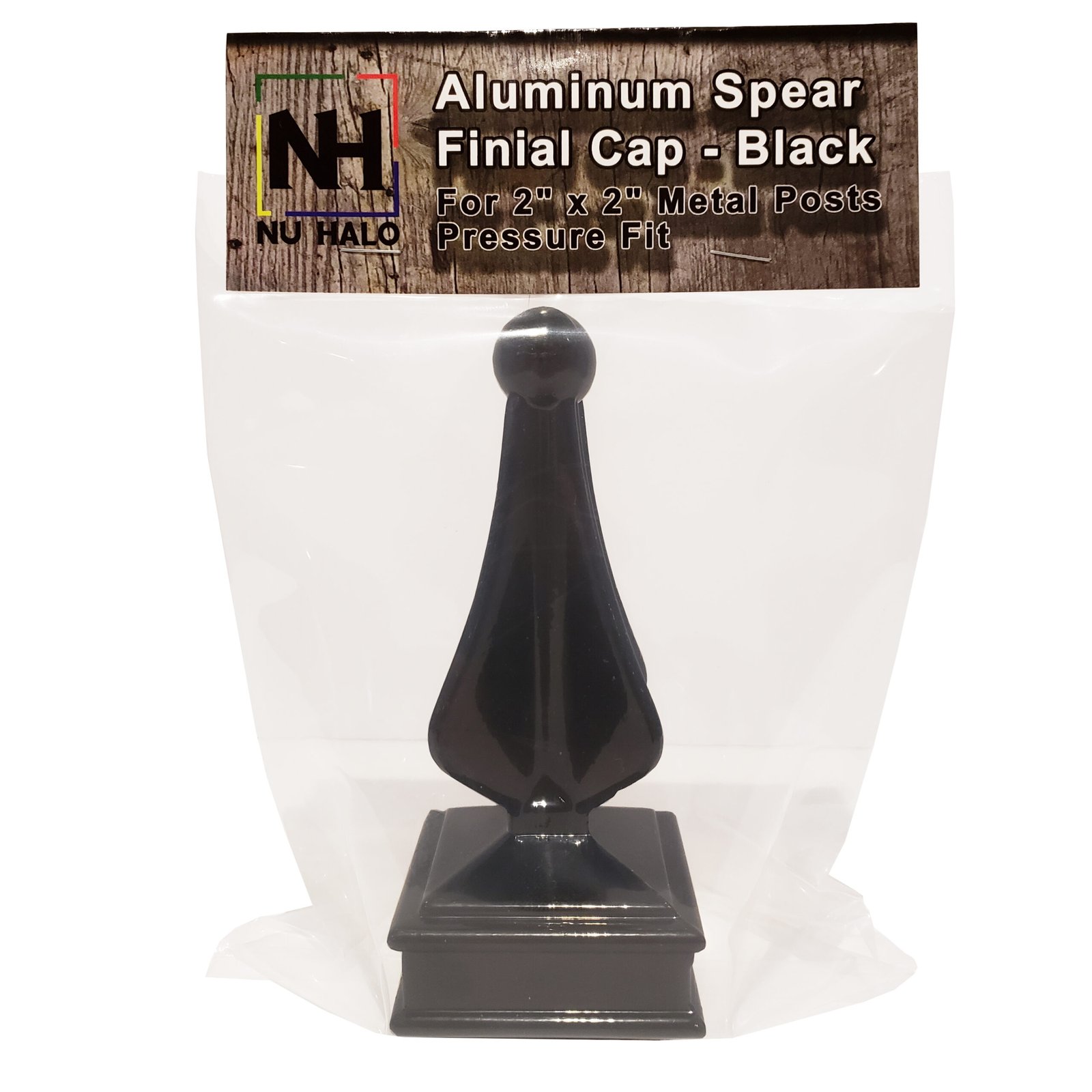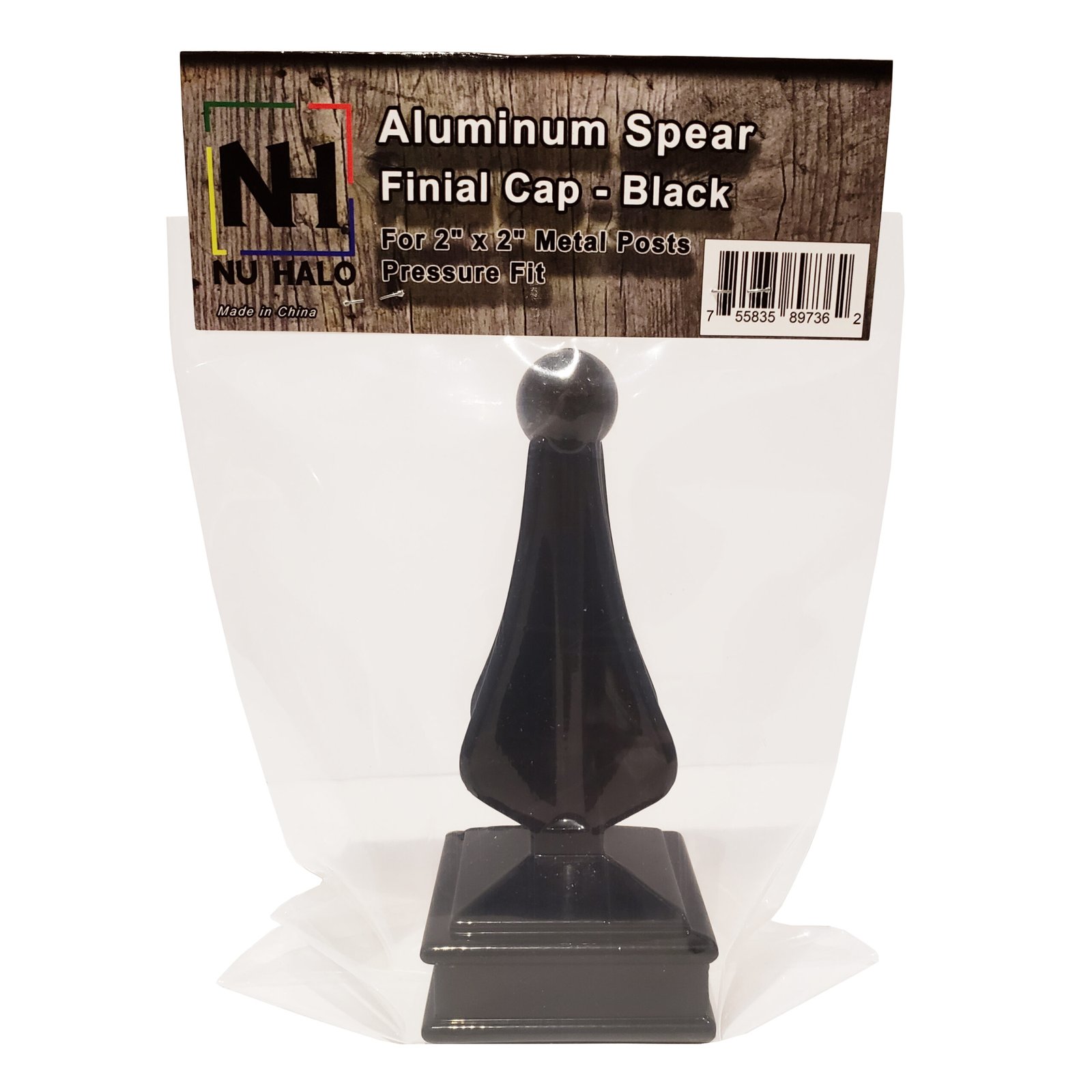 Decorative Spear Finial Post Cap for 2" x 2" Metal Posts - Cast Aluminum Black