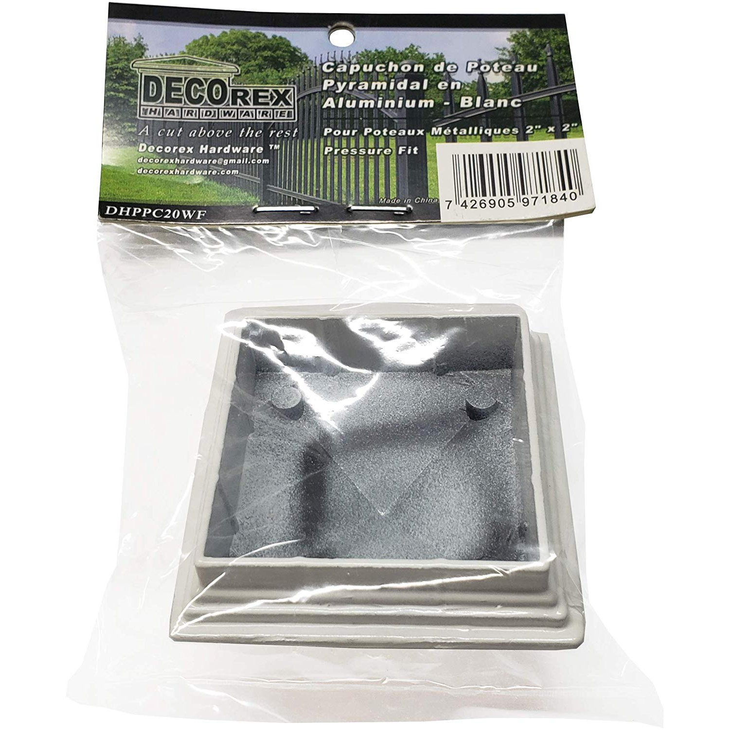 Decorex Hardware 2″ x 2″ Aluminium Pyramid Post Cap for Metal Posts – Pressure Fit – White (DHPPC20WF)