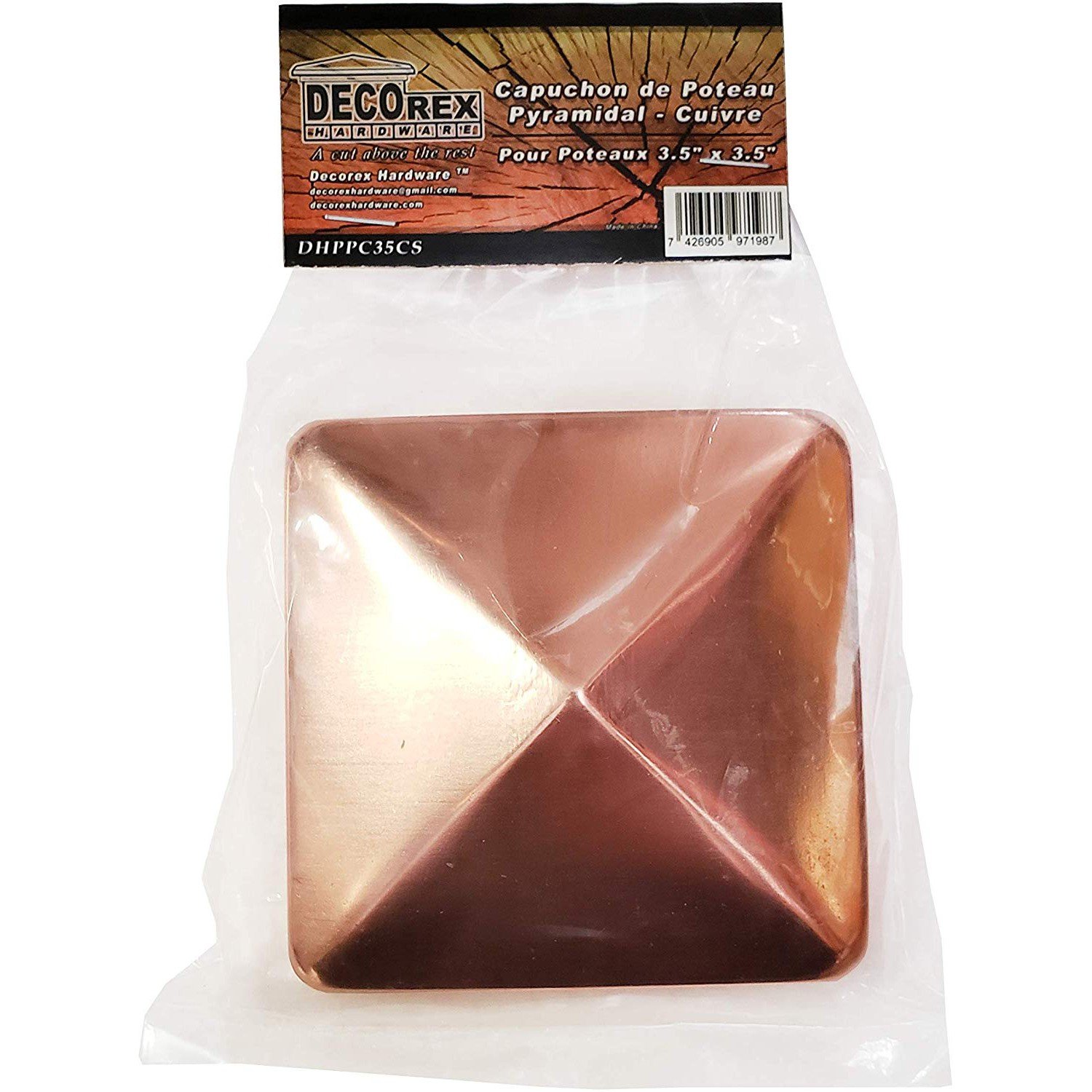 Decorex Hardware 3.5" x 3.5" Solid Copper Pyramid Post Cap for Actual 3.5" x 3.5" Wood Posts