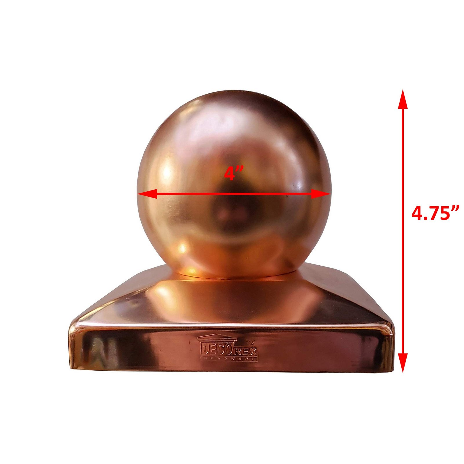 Decorex Hardware 5.5″ x 5.5″ Solid Copper Ball Post Cap for Actual 5.5″ x 5.5″ Wood Posts