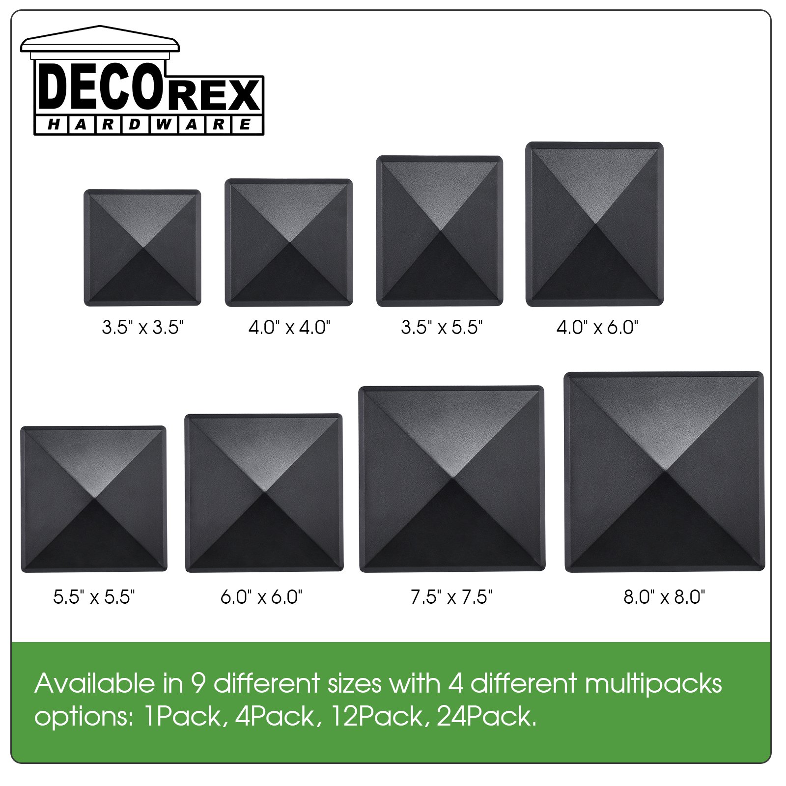 Pyramid Post Caps are marked “Decorex Hardware” on one side of the Cap.