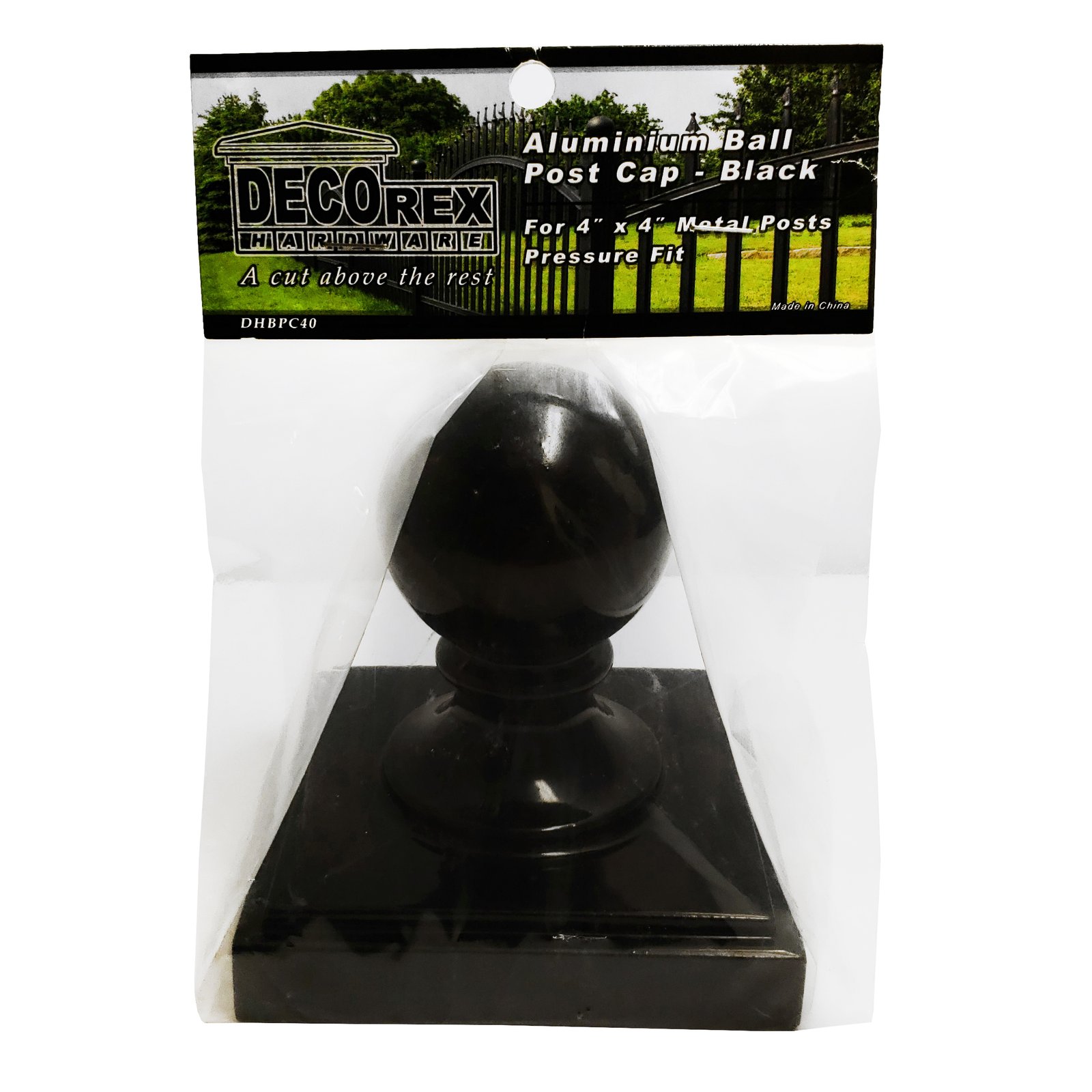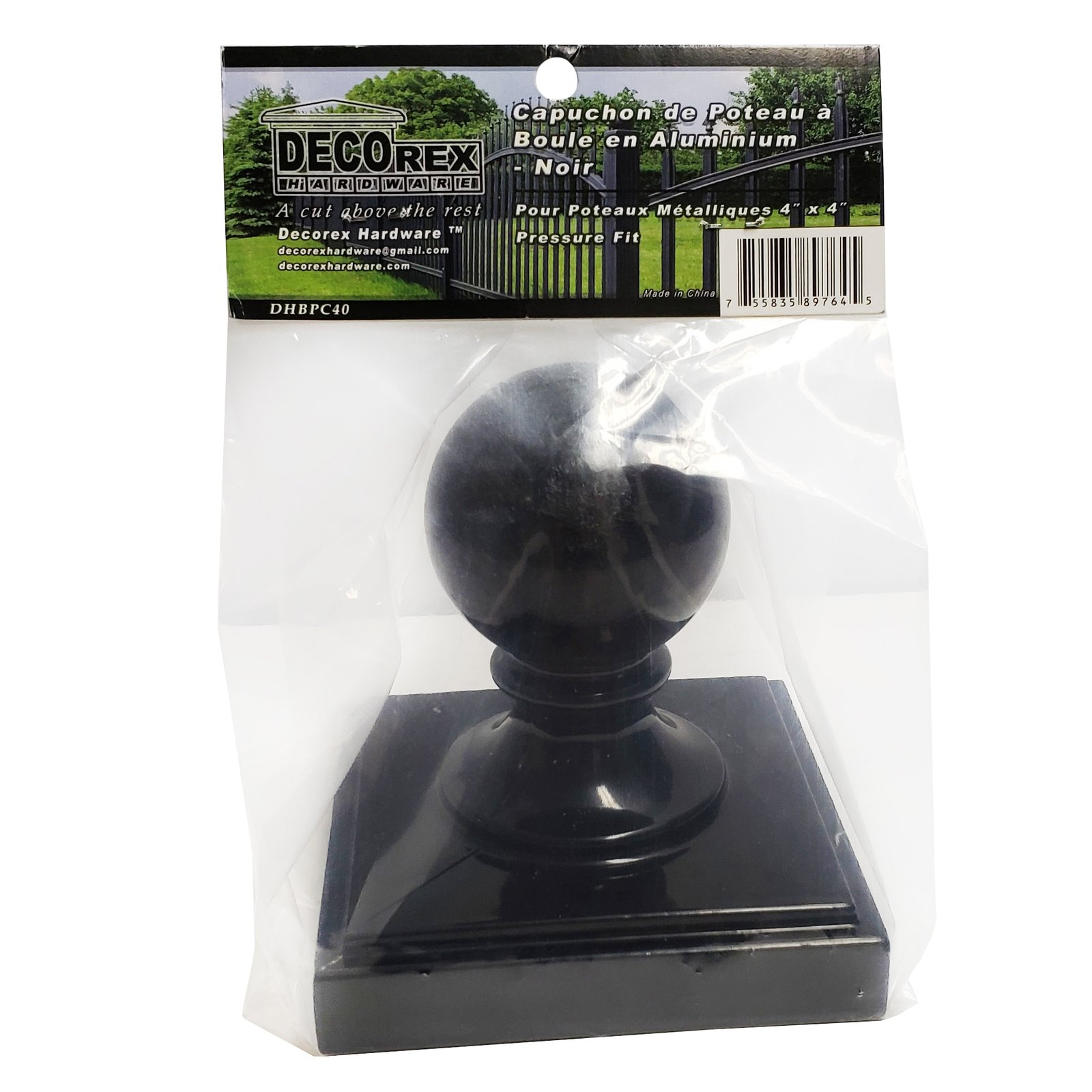 Decorex Hardware Aluminium Ball Post Cap for 4″ x 4″ Metal Posts – Black