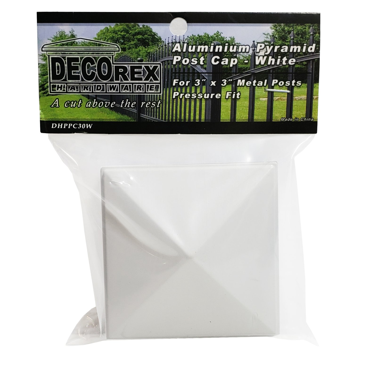 Decorex Hardware Aluminium Pyramid Post Cap for 3" x 3" Metal Posts - Pressure Fit - White