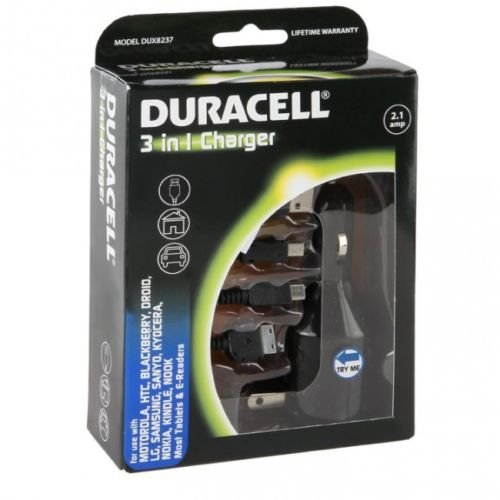 Duracell 3 in 1 (Car Home USB) Charger for Cell Phones Tablets & E-Readers