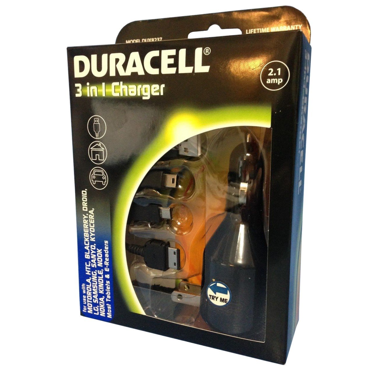Duracell 3-in-1 2.1 Amp Charger for Motorola, HTC, Blackberry, Droid, LG, Samsung, Sanyo, Kyocera, Nokia, Kindle, & Nook.