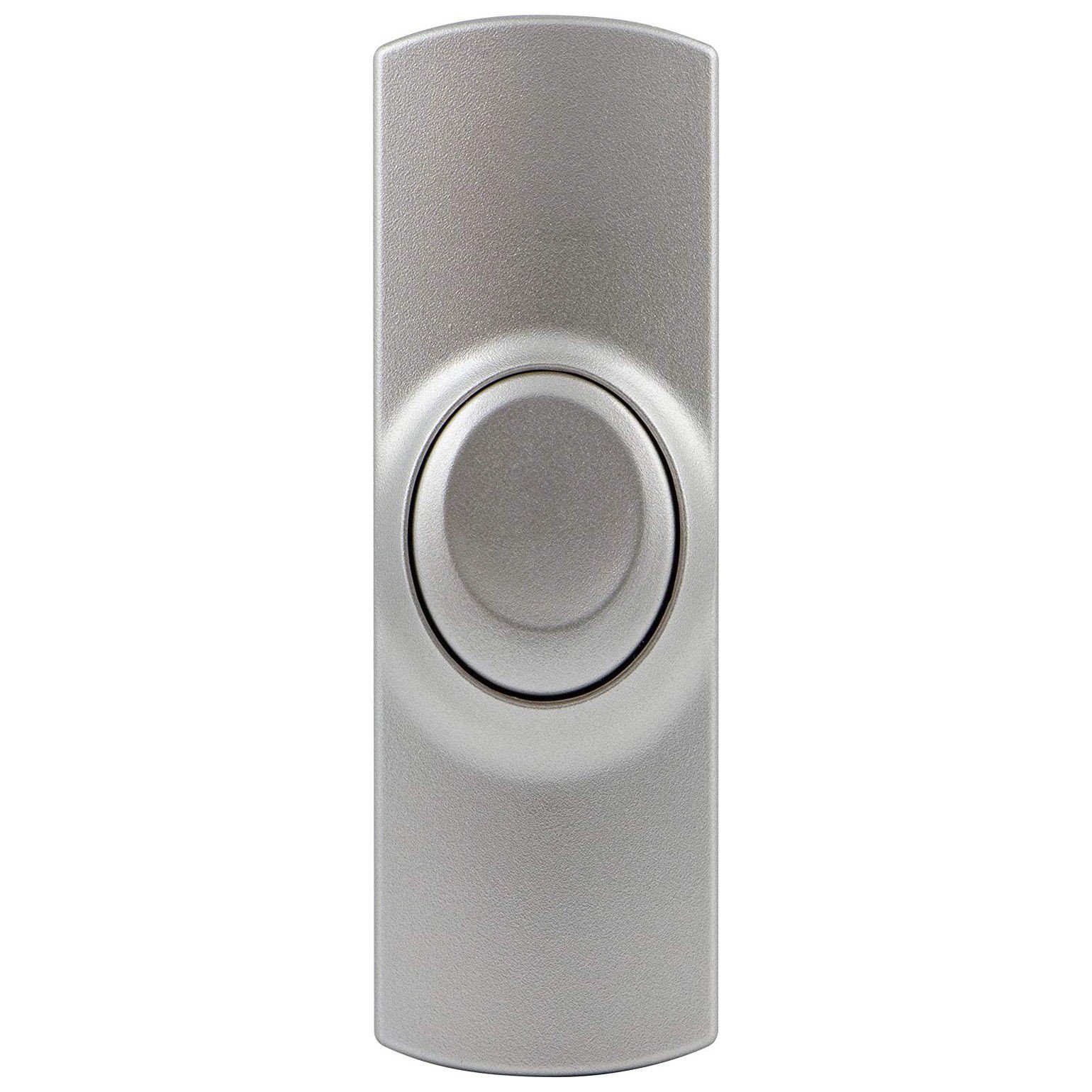 GE Wireless Push Button, Works With Battery & Plug-In Door Chimes – Silver – 19301