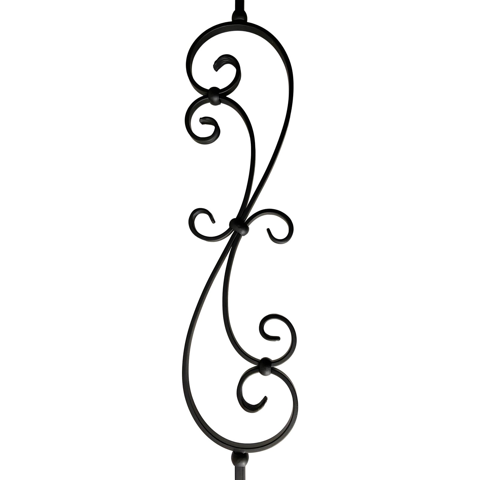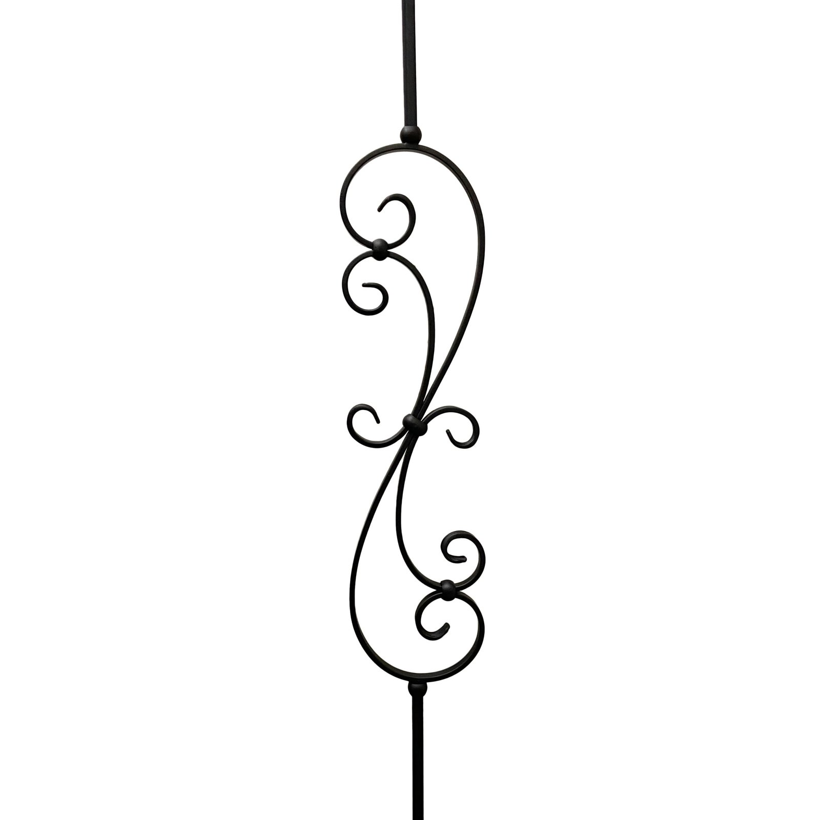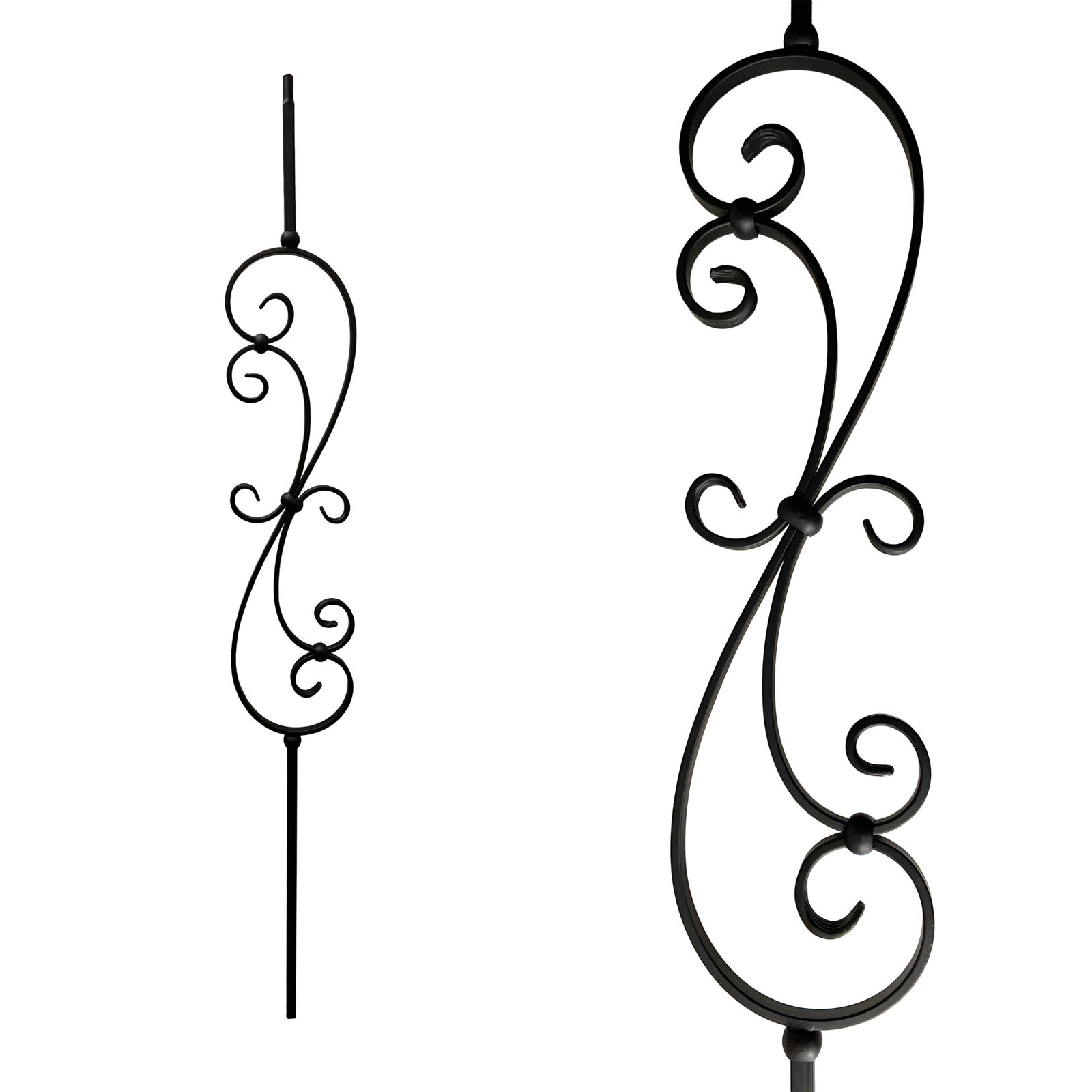 Iron Stair Balusters 1/2" Square x 44" Long, Big Scroll, Hollow, Black Powder Coated - 6pcs - (Satin Black) - DH-09