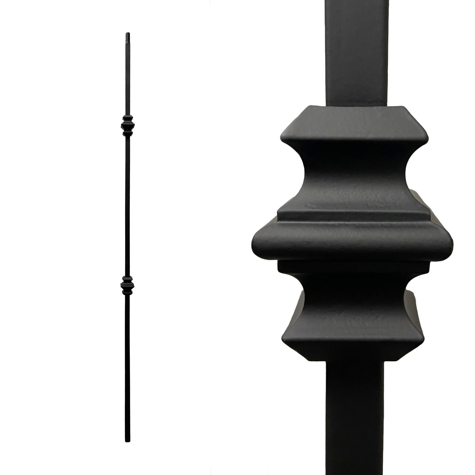 Iron Stair Balusters 1/2″ Square x 44″ Long, Double Knuckle, Hollow, Black Powder Coated – 15pcs – (Satin Black) – DH-07