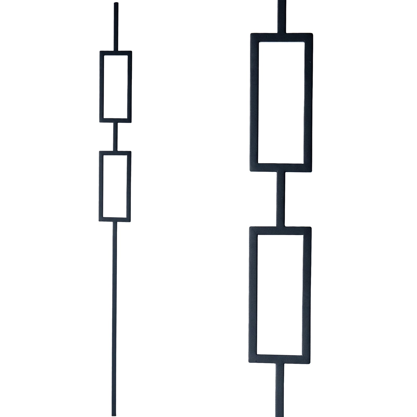 Iron Stair Balusters 1/2" Square x 44" Long, Double Rectangle, Hollow, Black Powder Coated - 15pcs - (Satin Black) - DH-34