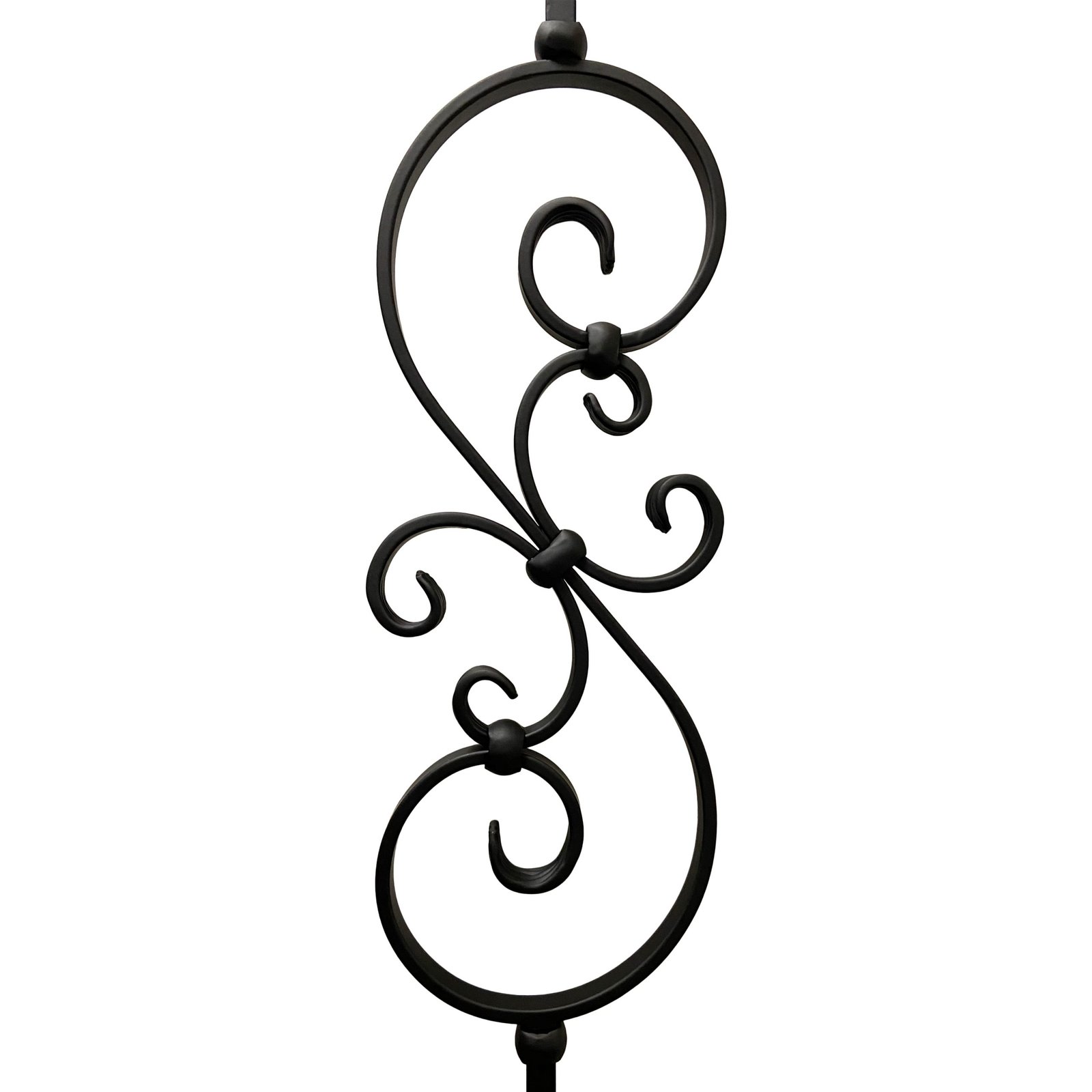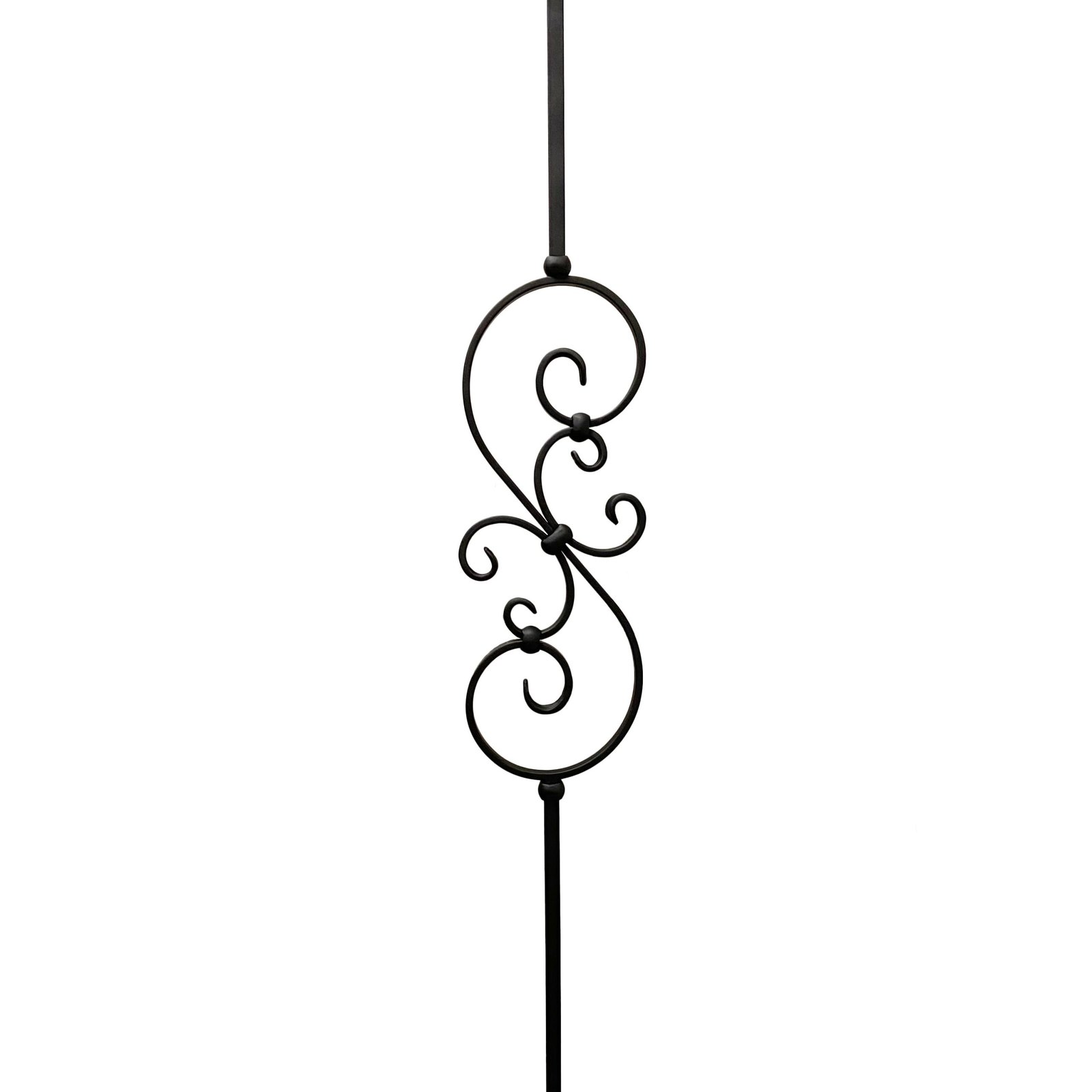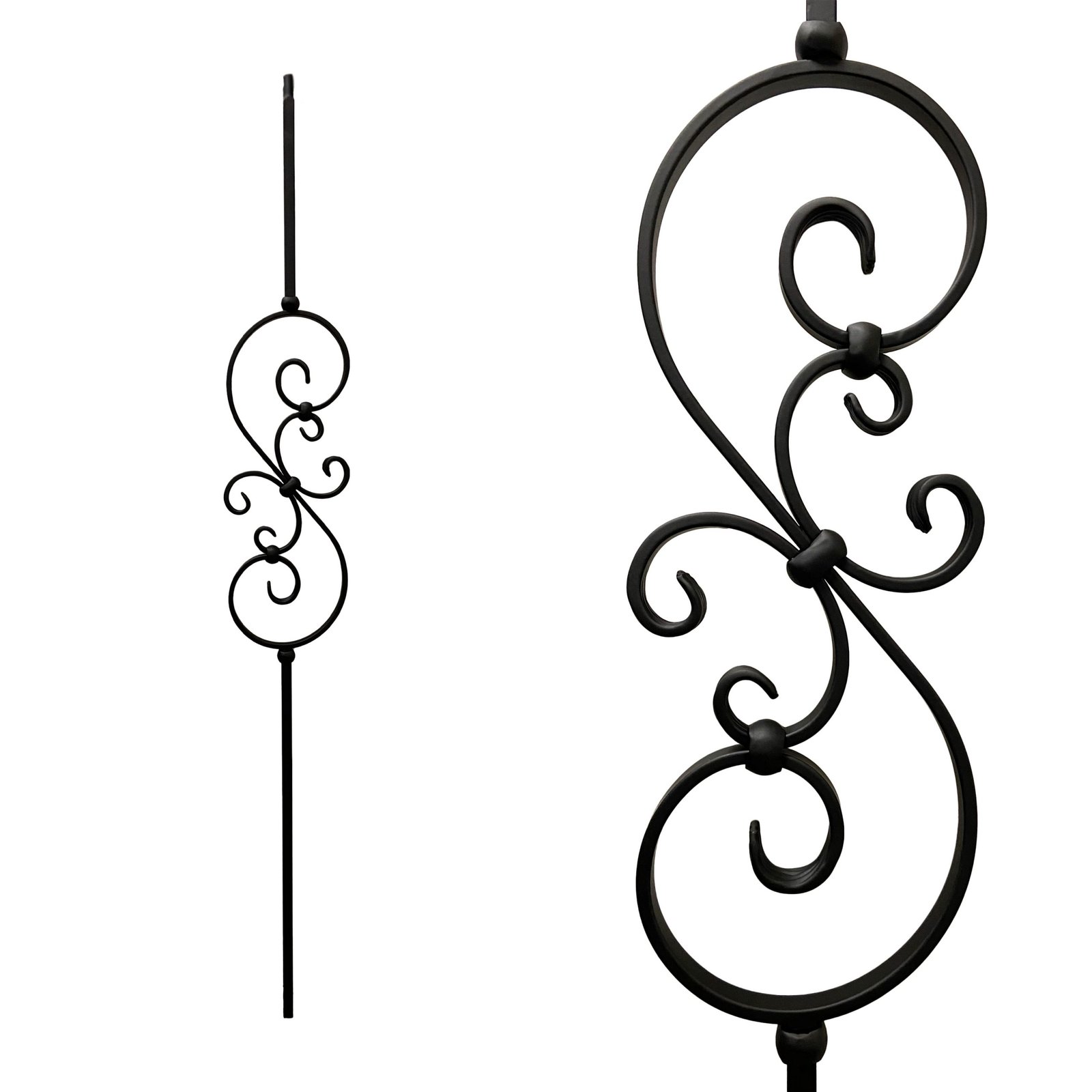 Iron Stair Balusters 1/2″ Square x 44″ Long, Small Scroll, Hollow, Black Powder Coated – 6pcs – (Satin Black) – DH-08