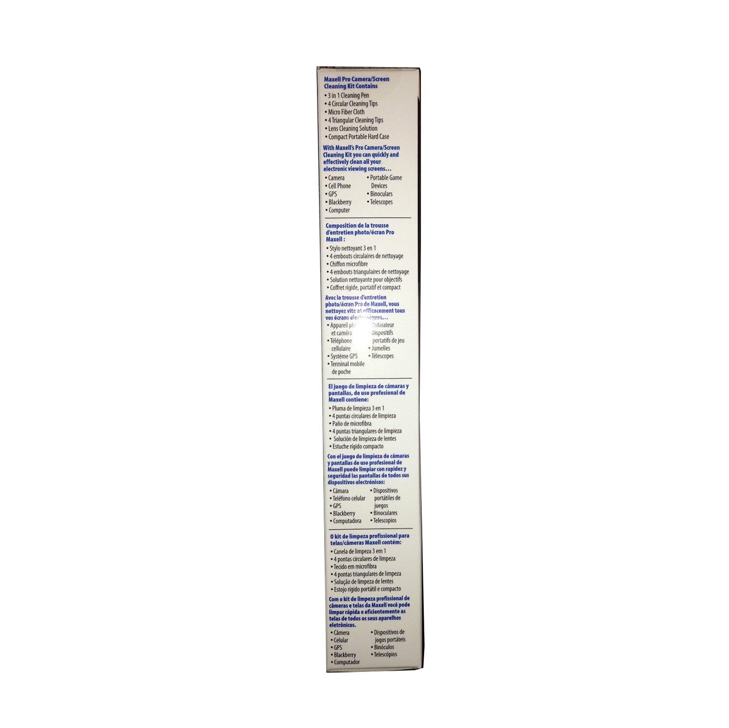 Maxell Pro Digital Camera/Screen Cleaning Kit. The Maxell Pro Digital Camera Cleaning Kit includes all the tools that you need to keep your camera and lens clean whether you’re a professional photographer or new to the art of photography.