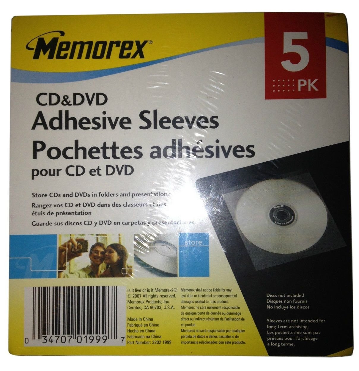 Memorex CD & DVD Adhesive Sleeves 5 Pack