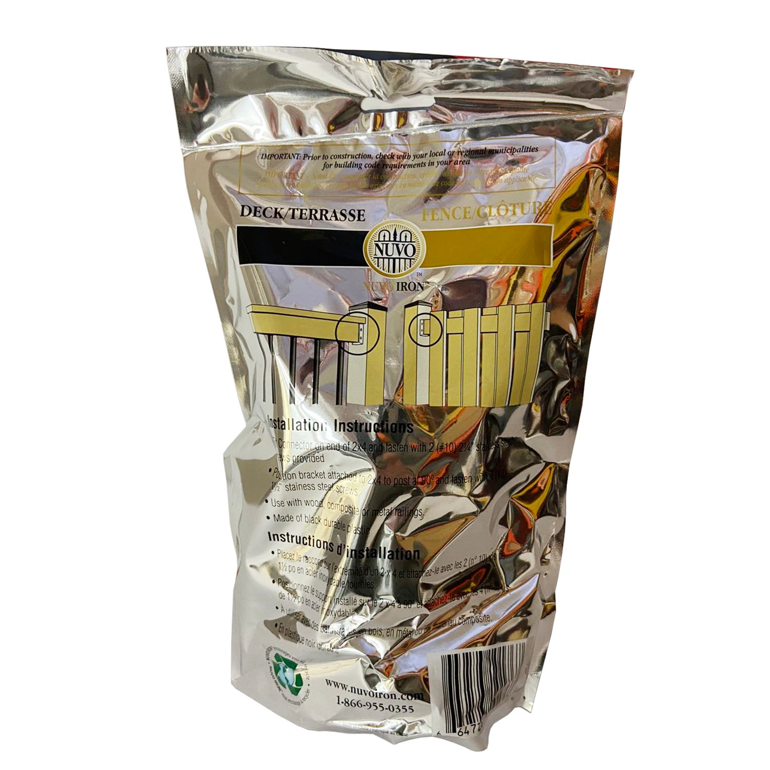 Nuvo Iron Deck Rail Connectors is the fastest way to attach your railing to post. With these connectors you can create clean, strong and effective support for your railing. Made from highly durable plastic. For use with solid 2″ x 4″ composite or wood railings. Connector have 4 holes at side for installing rail to the post with 4 screws. Available in black only.