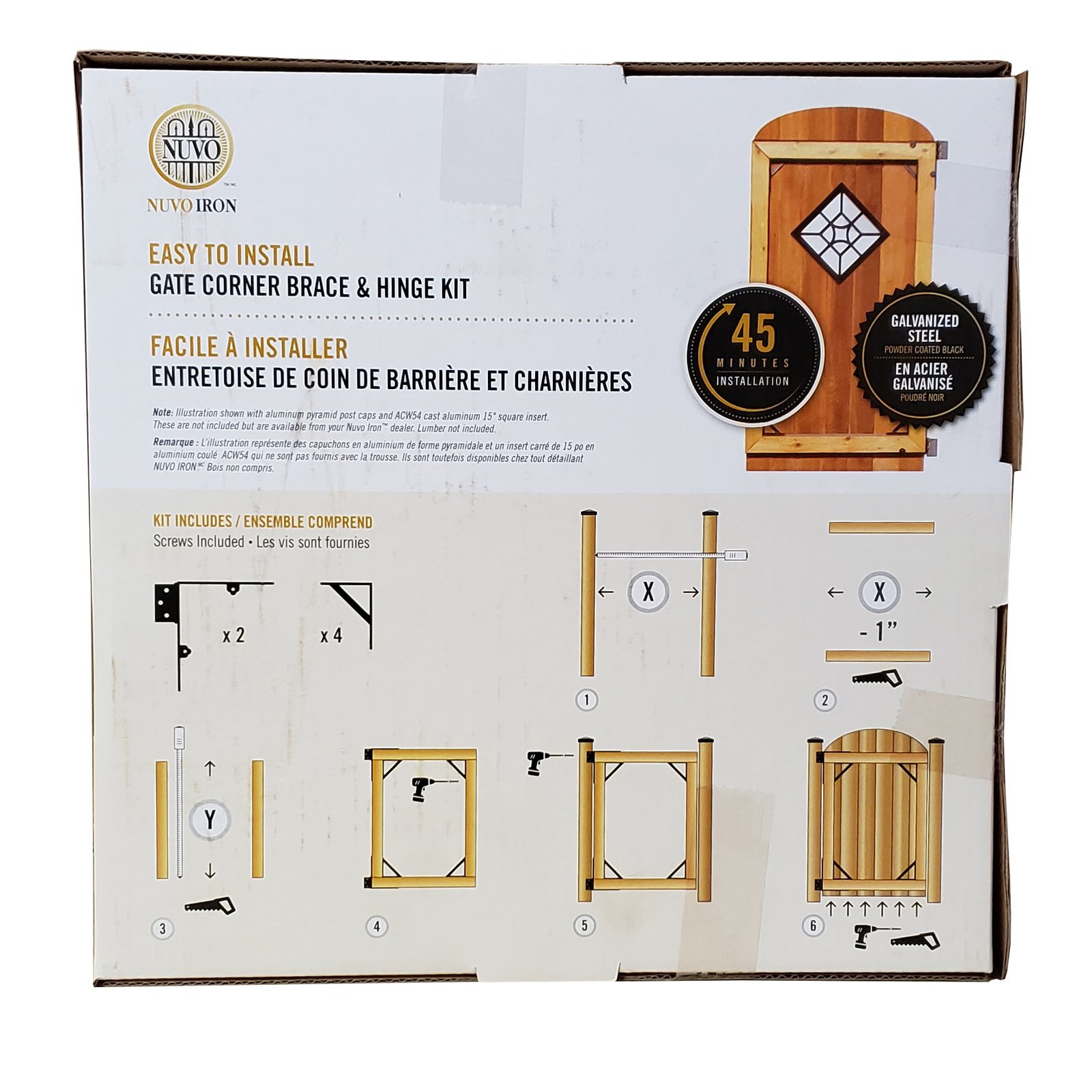 Nuvo Iron Gate Corner Brace and Hinge Kit GCBHK01 4 Braces 2 Hinge Brackets