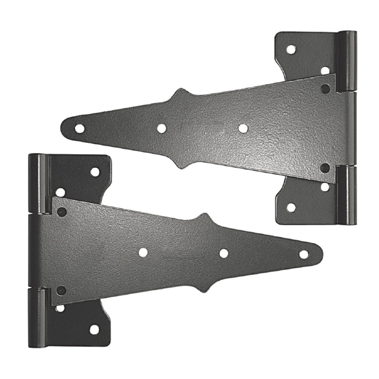 The Nuvo Iron 8 ” Tee Hinges are ideal for surface applications on doors, gates, sheds and tool boxes. Easy to install.