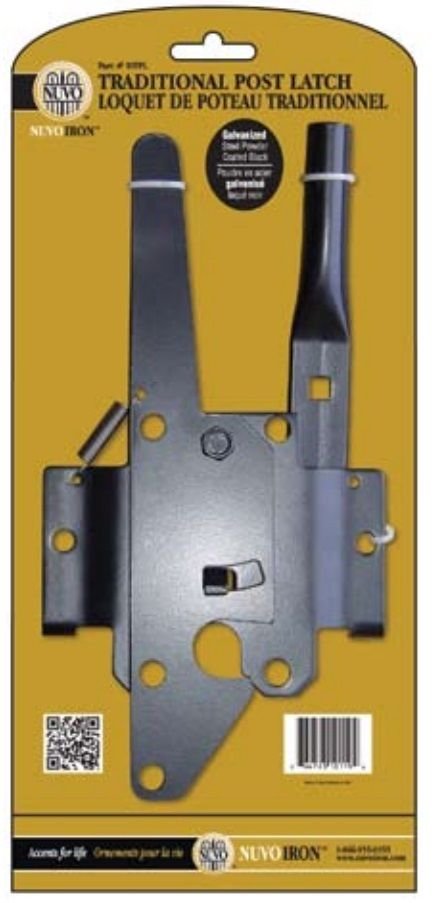The Nuvo Iron Traditional Post Latches are ideal for surface applications on doors, gates, sheds. Easy to install. Post Latch has a reversible pin for right- or left-handed use. The heavy duty latch provides simple security for gates and shed doors.Designed for padlock use on both sides of the gate