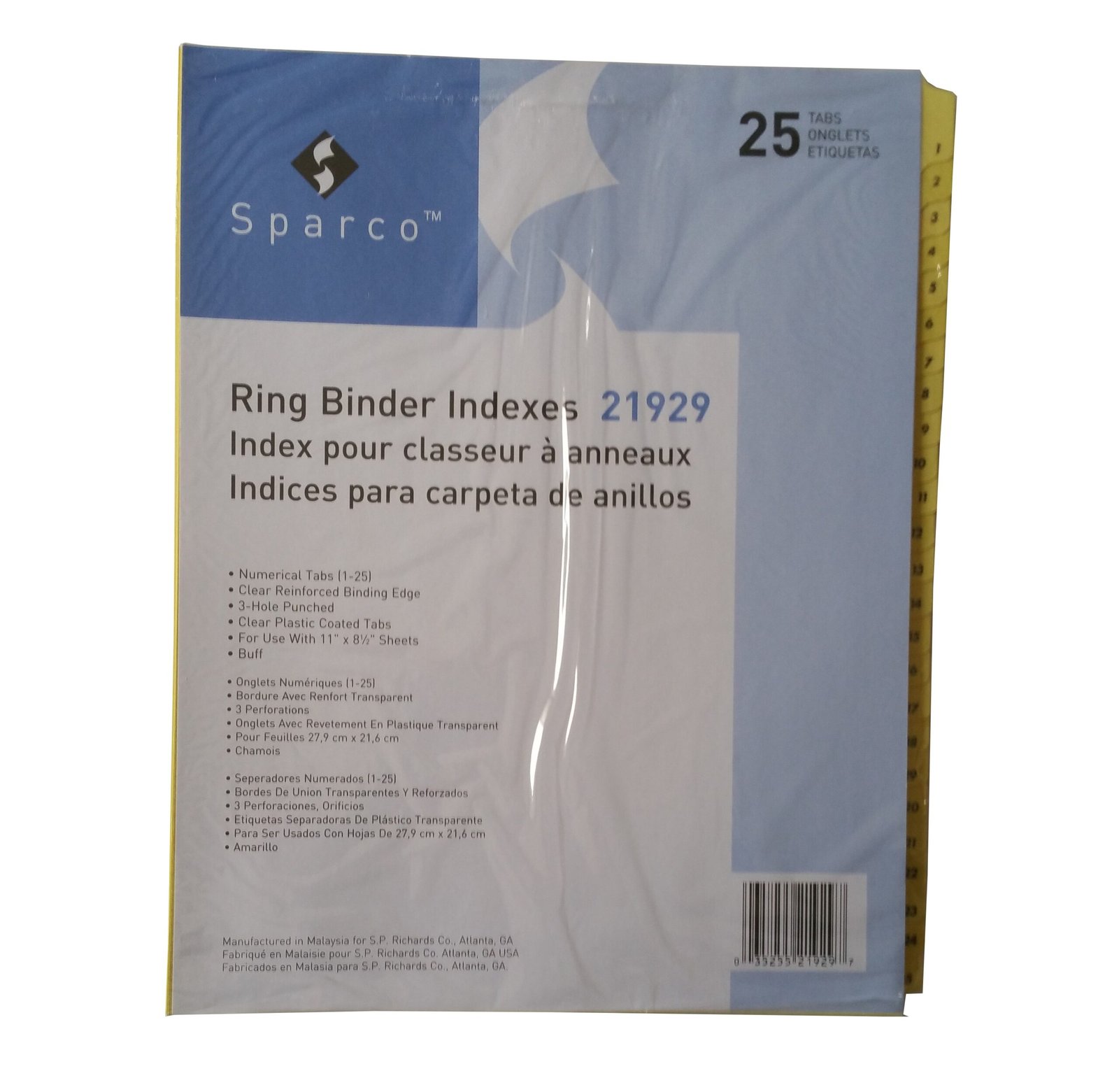 Sparco Clear Plastic Numbered Tab Indexes 25 – Tab(s) Printed 8.5” x 11”